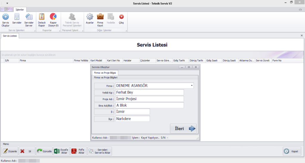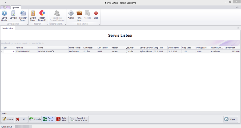 Servis Kayıt